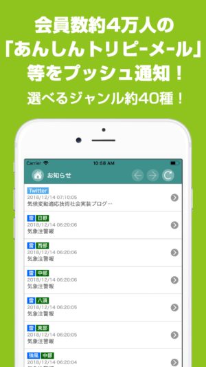 【詳細】 あんしんトリピーなびは、鳥取県が配信する防災メール(あんしんトリピーメール)をスマートフォンで簡単に受け取り、その内容を確認することのできるアプリです。
