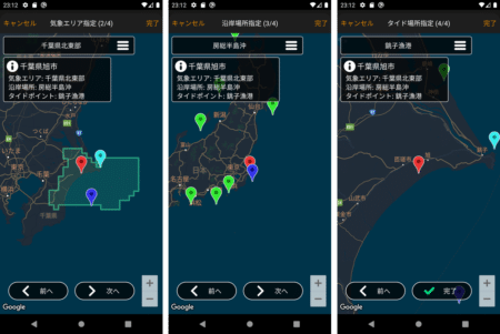 その他の地点情報(気象エリア、場所に近い沿岸場所とタイド地点)は変更もできますが、自動でエリアや位置をナビゲーションするので変更がなければそのままで構いません。