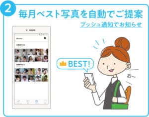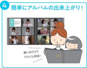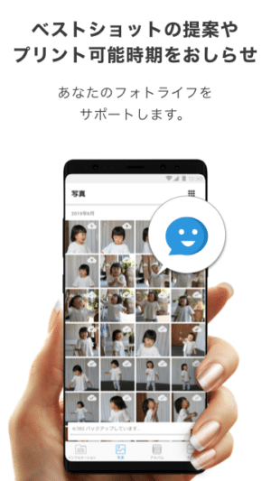 本アプリは、子育て世代・20代~30代主婦層に特化したアプリとなっており、時間の無い主婦層の方々が、お子様の大切な思い出をお手軽に残せるようにと、写真の保存・写真選定・写真プリントの手間を極限まで無くしました。