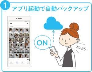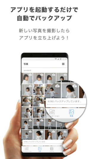 - アプリを立ち上げるだけで、スマホ内の写真画像を自動バックアップ。