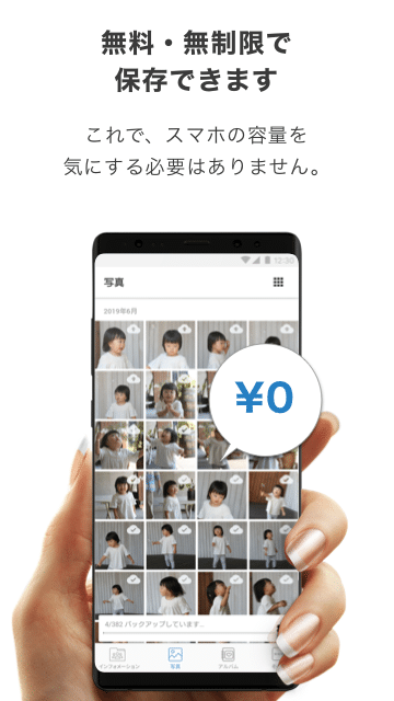 - スマホの写真データを無料・容量無制限で保存可能で。スマホ本体の容量を気にせずに思い出を残せます。