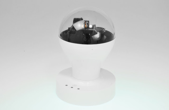 一瞬素敵な照明器具か?とも思ったのですが、違いました。冷静に見ると透明なドームの中は、精密な機械が。実はこれ監視カメラでした、その名も『O!Care』。どういうネーミングでしょうか。不思議です。でもこんなおしゃれな形をした監視カメラを見たことがないので、初めてみる人もまさかこれで監視されていると思わないのではないでしょうか。