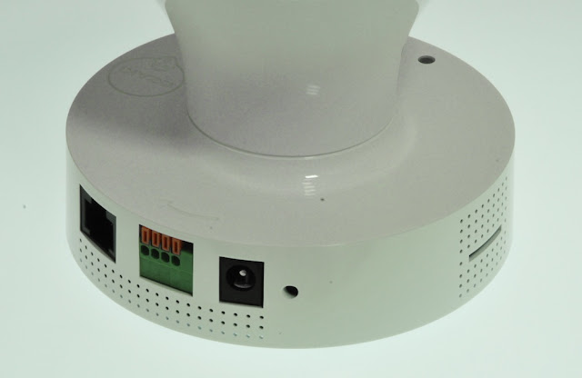 側面をみると、LANケーブルのポートとACアダプタを接続するところがあります。またMicro-SDカードも差し込めるようです。これに撮影した画像や動画データが蓄積されるようです。