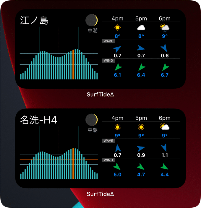 サーフィンや釣りにタイドと波情報SurfTideΔがAppleWatchに対応、そしてiOS14のウィジットにも対応!